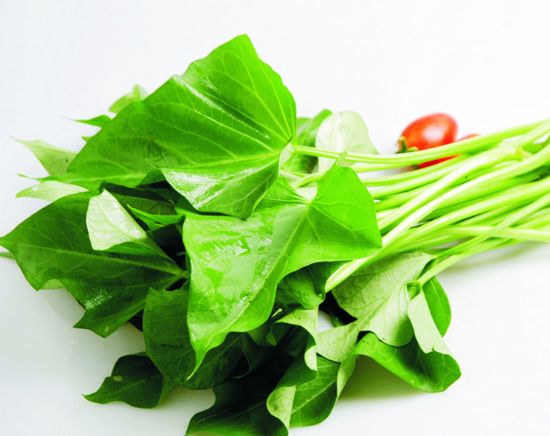 红薯叶又称地瓜叶,即红薯生长过程中的茎上的叶子。红薯叶有提高免疫力、止血、降糖、解毒、防治夜盲症促进新陈代谢、通便利尿、升血小板、预防动脉硬化、阻止细胞癌变、催乳解毒等保健功能。红薯叶可使肌肤变光滑,经常食用有预防便秘、保护视力的作用,还能保持皮肤细腻、延缓衰老。