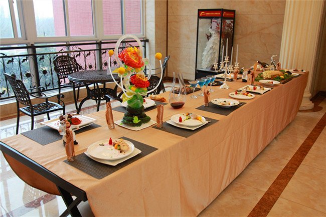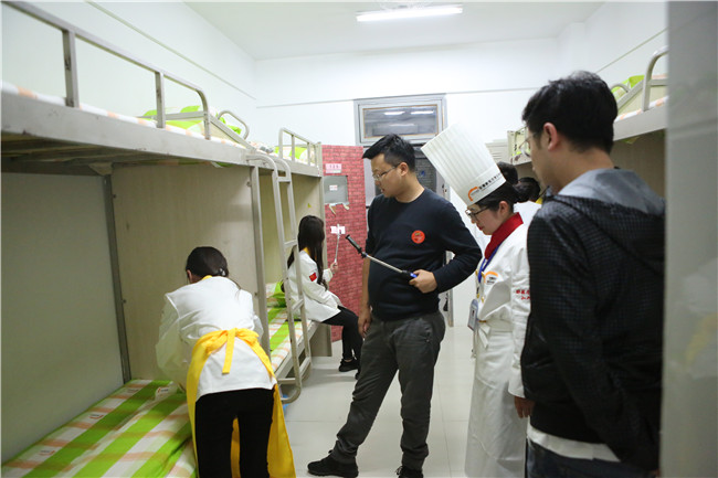 在综合楼前,新东方西点专业琳琅满目的毕业作品展吸引了主播们驻足欣赏与拍摄,被学子精湛的专业技能而折服。随着不远处霸气的鼓声响起,装满沙子重达十斤的铁锅在新东方学子手中瞬间完成推、拉、送、扬的动作,这整齐划一、气势磅礴的新东方基本功——“击鼓翻锅”顿时让刚入学的插班生们震惊万分。在随后东方盛宴的参观中,八大菜系与中华宴席的完美融合,不仅展示了新东方大师高超的烹饪技能,更是对中华传统宴席文化的沿袭与传承。