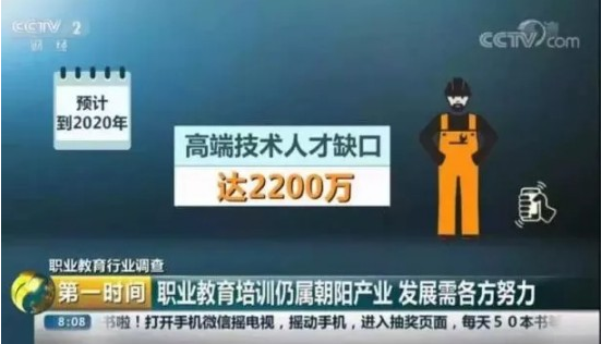 根据《中国人才发展报告》显示,预计到2020年,我国高端技术人才缺口将达2200万。今年,加大高技能人才激励被写入政府 工作报告。央视财经频道《第一时间》栏目,走进新华教育集团,共同探讨职业教育行业的华丽升级。