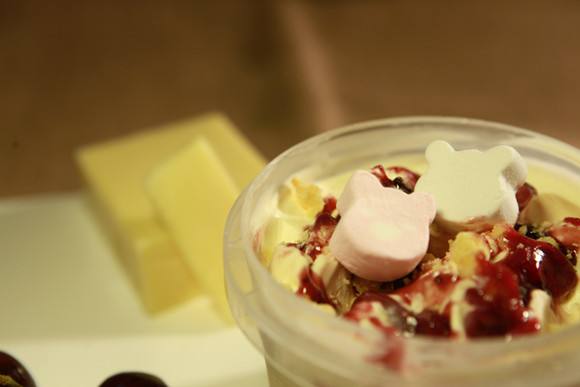 材料:樱桃果酱、淡奶油、鸡蛋、汤、牛奶