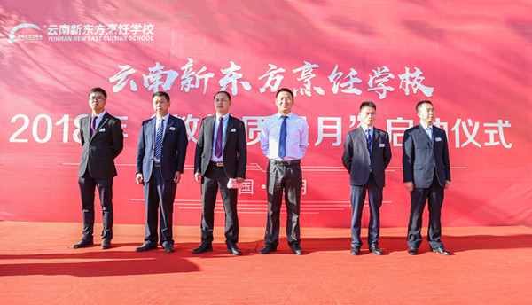 5月7日,云南新东方烹饪学校开展了2018年“教学质量月”启动仪式。出席本次仪式的有校区主任邓自山、教务处主任刘启敏、学生处主任王绍华和郭家兵、蔡昱、张昆老师以及新东方全体学生。