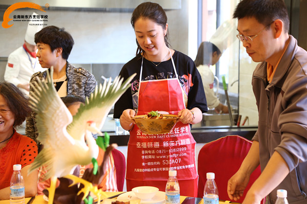 时间一分一秒的过去,一道道可口菜肴也陆续呈现在这10组家庭的眼前。吃着、聊着、欢笑着,看着他们在云南新东方烹饪学校度过一个特别的母亲节,云小新也为他们感到开心。