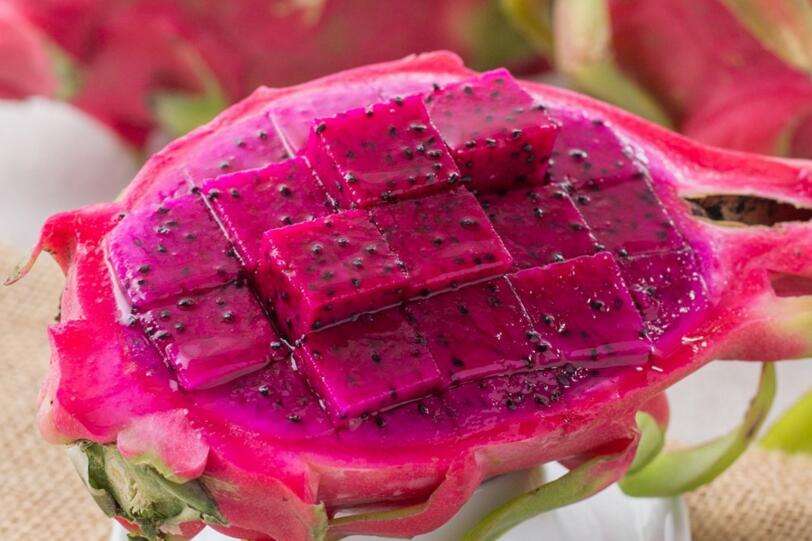 火龙果因其外表似蛟龙外鳞而得名。它是集水果和蔬菜的优点为一身的绿色保健食品。不仅具有很高的营养价值,味道极佳,而且所含糖分较少、热量低,减肥瘦身效果十分理想。