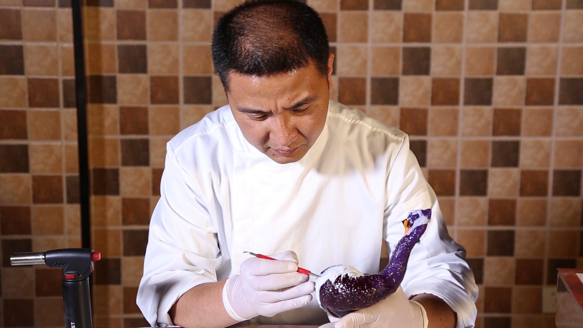 首先,给大家先简单的介绍一下我们家的阮智敏老师。他是中式烹调师、云南名师、云南“食雕大师”、云南名厨专业委员会理事;擅长糖艺、雕刻、果酱、面塑、翻糖。2003年获得江苏省第三届烹饪大赛食品雕刻组特金奖;2005年获青岛市第十五届全国职业大赛雕刻组特金奖;2008年获第四届云南省烹饪大赛雕刻组特金奖,并获“云南名师”荣誉称号;2012年荣获云南省昆明市“技术能手”荣誉称号; 2013年被云南省昆明市名厨委员会聘为考评员。现任于云南新东方烹饪学校。