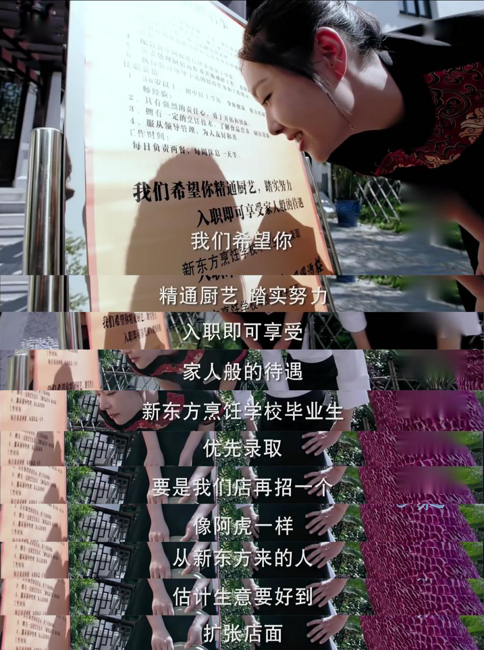 有趣的是,感受到竞争的压力,大团圆酒楼也开始招兵买马,更郑重声明“新东方烹饪学校毕业生优先录用”,一个品牌能够强大到被应用在电视剧中,怪不得都说新东方烹饪学校是“厨师人才的摇篮”!