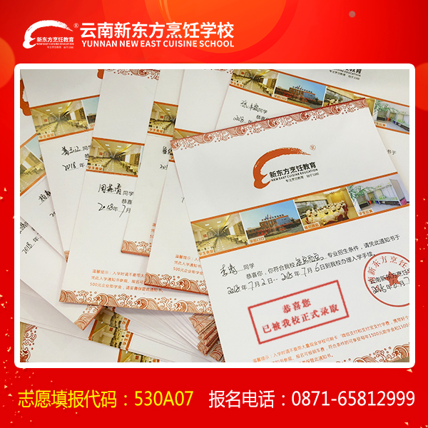 在这技能人才紧缺的社会,你掉队了吗?赶紧跟上云南新东方烹饪学校的步伐吧。接到我校通知书的小伙伴们,请你们于7月6日前赶快到校报到啦。名额已所剩无几,错过再等一年了。没有收到入学通知书和还没有填报我校的小伙伴们抓紧拨打0871-65812999咨询热线预留名额或者到校考察。填报我校志愿代码:530A07 学校全名:云南新东方烹饪学校。