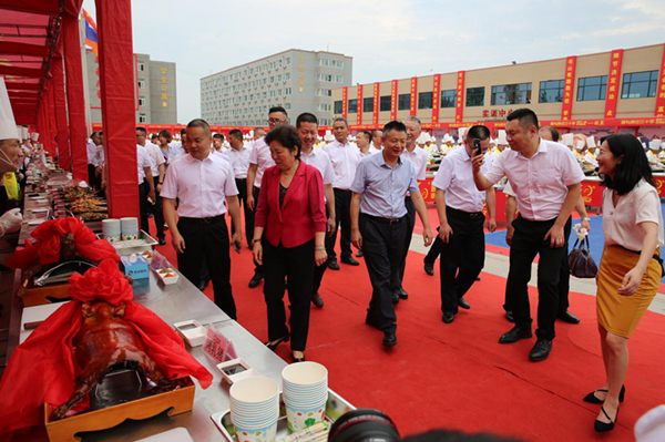 目睹了壮观的百人击鼓翻锅,品鉴了色味俱佳的主题宴席,领略了一气呵成的烹饪绝技,韩明会长与黄渤先生走近了来自全国各地,由新东方制作的数百道特色风味组成的美食展。