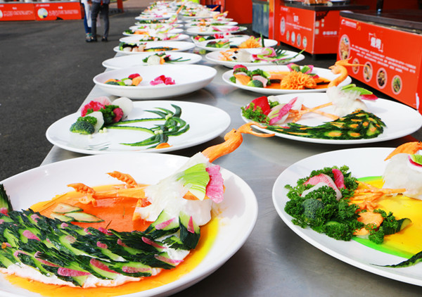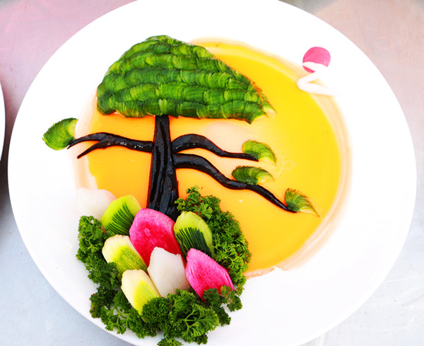 花色冷拼在宴席程序中是与就餐者见面的头菜,它以艳丽的色彩、逼真的造型呈现在人们面前,让人赏心悦目,食欲大增,使就餐者在饱尝口福之余,还能得到美的享受。在宴席中能起到美化和烘托主题的作用,同时还能提高宴席档次。