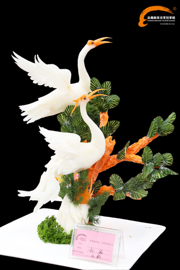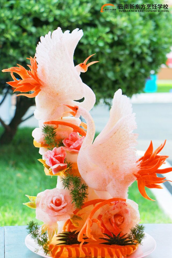 他说:“来到云南新东方教授学生,我觉得很开心。没想到学生们对于食品雕刻都很感兴趣,有些学生在这方面也比较有天赋,有时候练习起来可以说是到达了忘我的状态。这使我感到很欣慰。我相信,食物雕刻这项技术一定能很好的传承下去!”