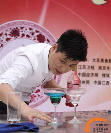 此外,安徽新东方烹饪专修学院的涂德成大师带来的花式调酒也是吸引了大批观众的注意。涂德成大师用变幻莫测的手法将各种酒的醇美释放到淋漓尽致。美食、美酒的魅力从来都是不可抵挡的,调好的鸡尾酒自然也是被在场观众一扫而光。