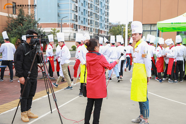 云南新东方烹饪学校2019春季人才招聘双选暨校企签约预定会在庄严的国歌声中拉开帷幕。身穿厨师服的同学们满怀憧憬、昂首挺胸的站在操场上,形成了一道亮丽的风景线。