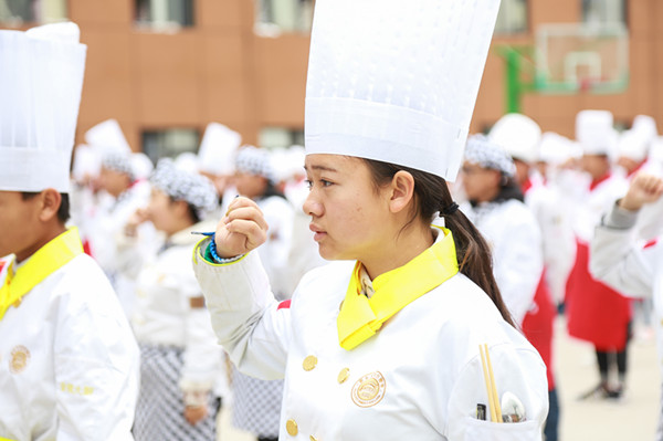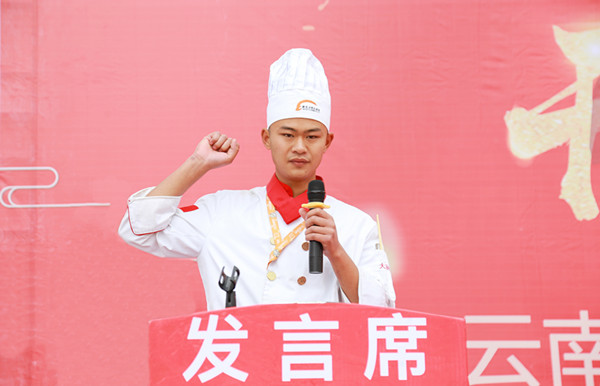 接下来,学生代表上台发言并宣誓。他代表全体新生进行宣誓:“热爱烹饪事业,弘扬饮食文化,尊师重教守纪,维护食品安全,倡导勤俭节约,立品格,练技能,为做一名德艺双馨的厨师而奋斗!”