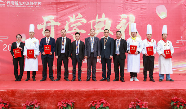 随后,学校领导还为2019春季新生班各班班主任颁发了聘书。云南新东方烹饪学校校区邓主任说道:“新的学习,新的生活,带来了新的征程、新的挑战,也孕育新的憧憬与希望。希望每一位学生都能用自己的勤奋与智慧书写出你们人生的满意答卷。”