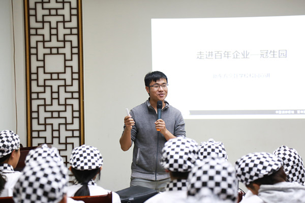 首先,由昆明冠生园企业宣讲人向学生们介绍了企业现阶段的发展现状:“昆明冠生园食品有限公司是中国民族工业的名牌老字号企业,冠生园品牌创建于1915年,至今已有近100年的历史。昆明冠生园“梅花牌”商标是国家商务部2006年首批认定的“中华老字号”企业。昆明冠生园始终将“诚信”作为企业立身之本和兴业之道,视产品质量为企业的生命线,从而促进了企业不断地向前发展。作为国家商务部认定的“中华老字号”企业,公司将继续不断地推陈出新,将传统工艺与现代生产技术相结合,以质量高的产品,优质的服务来回报社会。”