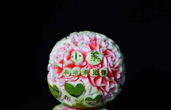 每个新东方烹饪学校的老师,都是深藏不露的大师。校园接待日那天,如华山论剑般精彩:果蔬雕刻、花色冷拼、蒙眼刀工、果酱画工艺、翻糖工艺……应有尽有。