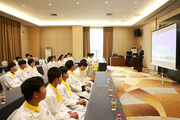参观结束后同学们来到了酒店会客厅,在这里云安会都负责人则以PPT形式更加详细了解的与同学们再一次介绍了云安会都酒店的发展史以及酒店后厨的工作模式,同时也就同学们的疑问进行了一一解答。