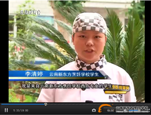 昆明教育电视台《昆明教育新闻》21日20:12分播出职教宣传周系列报道—“云南新东方烹饪学校:烹饪,创造舌尖上的出彩人生”,敬请关注。重播时间为22日12:15分。同时还可以登陆“昆明教育电视台”官方网站(网址:http://www.kmetv.com/index.shtml)收看直播火进行点播。