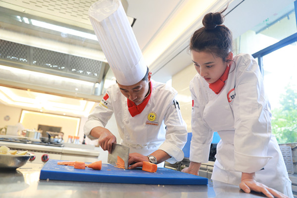 学厨是件开心的事情!当然咯,在过程中也不免有一些瑕疵和失误,但在专业老师的指导下,祖儿很快就做好了调整和改进,从老师的指导意见来看,细心认真的祖儿很有烹饪天赋。