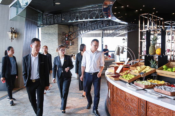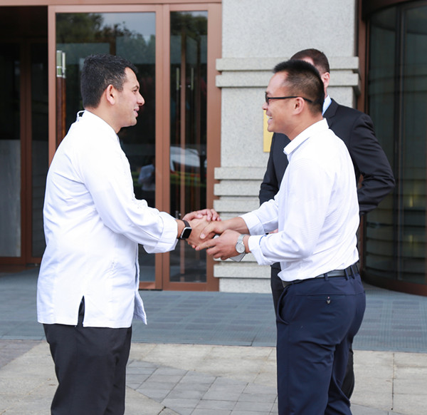 云南新东方烹饪学校老师一行人刚到达酒店时就受到了昆明索菲特酒店大中华区区域总厨默罕默德的热情接待。并安排酒店总经理和行政助理经理全程陪同,带领老师们参观酒店的大厅和厨房工作间并交流学习。