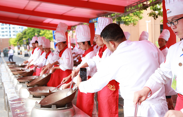 在整个参观过程中,默罕默德行政总厨还时不时拿出手机拍摄同学们翻锅上课场景以及和同学一同探讨菜品的制作流程,并与学校相关部门领导交流了解学校教学情况。