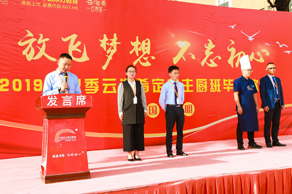 最后,云南新东方烹饪学校校区邓主任发表重要讲话,他说:“今天的毕业典礼,不是一个结束,而是同学们人生旅途的一个新起点。今后,在社会工作中同学们还需要学习更多的知识,不断充实自己。学校也会一直陪伴在他们左右,为他们的未来保驾护航。希望同学们能够在岗位上踏踏实实工作,取得骄人的成绩。”