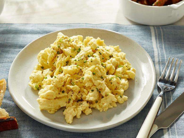 (3) 炒鸡蛋记得用筷子炒,炒的时候慢慢地将鸡蛋滑散,你会发现因为受热均匀鸡蛋变得更蓬松更大了。