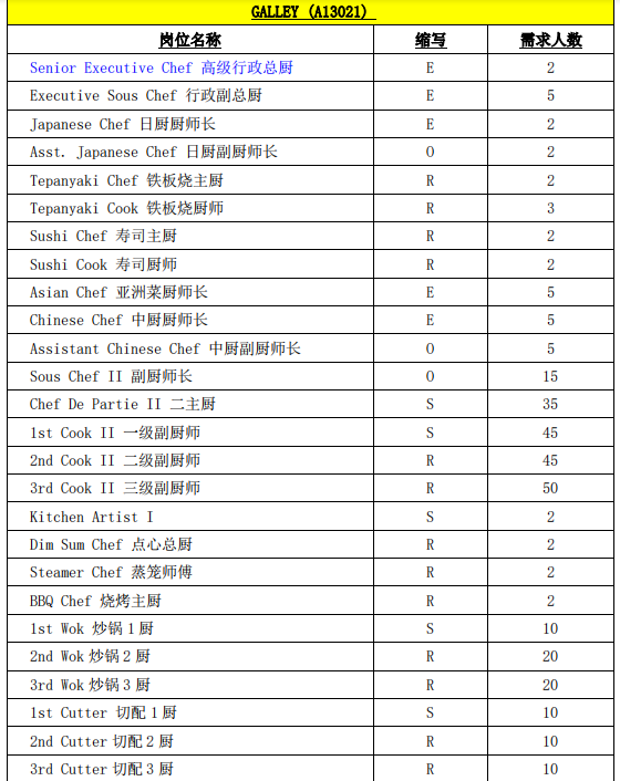 一、招聘邮轮厨师