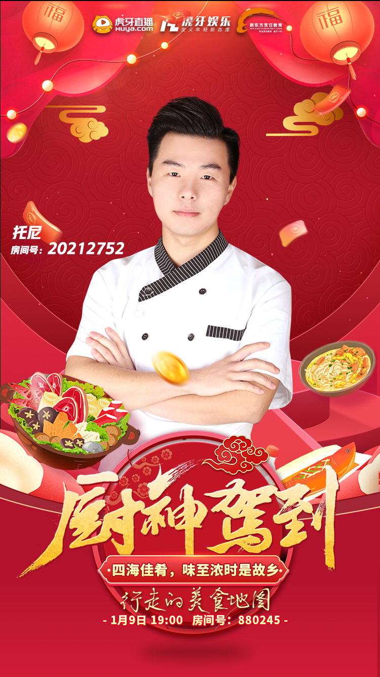 1月9日19:00《厨神驾到》新春特辑:https://www.huya.com/880245?from=xdf