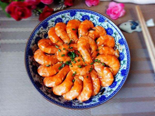 明虾300g,红果家茄汁酱,食用盐,料酒,姜、醋