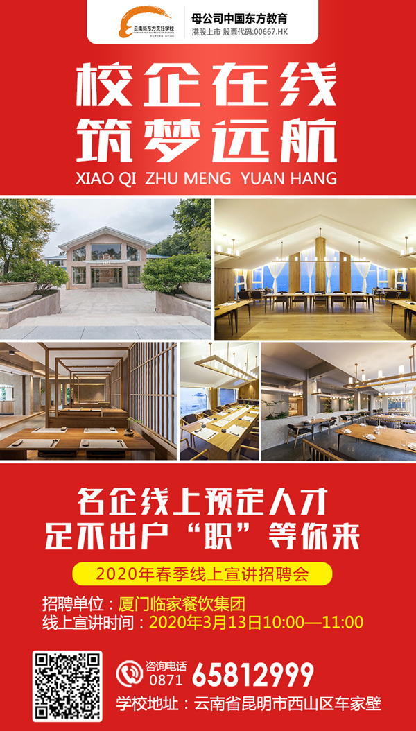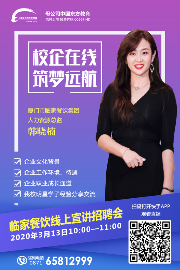 本次云南新东方烹饪学校联合临家餐饮集团展开线上宣讲招聘会