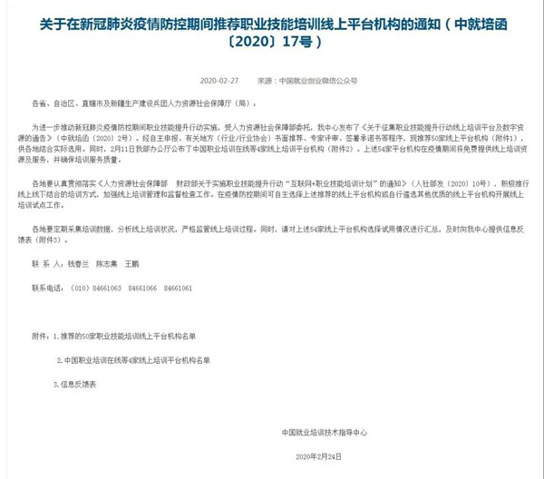 中国东方教育旗下新华云课堂被评定为国家新冠肺炎疫情防控期间推荐职业技能培训线上平台