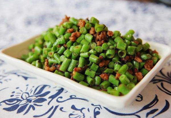 7、出锅之前把猪肉碎倒进去一起翻炒均匀即可出锅。
