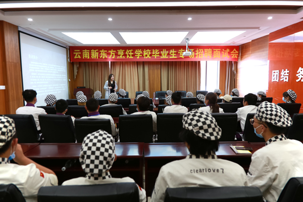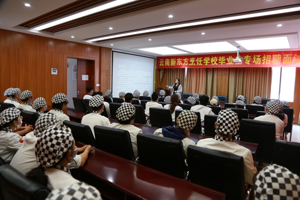 厦门市临家餐饮集团人力资源韩总监说道:“此次来云南新东方烹饪学校的主要目的也是为了招聘适合集团发展的同学到合适的岗位工作,接下来我们将通过一系列面试环节来选拔合适人选。”