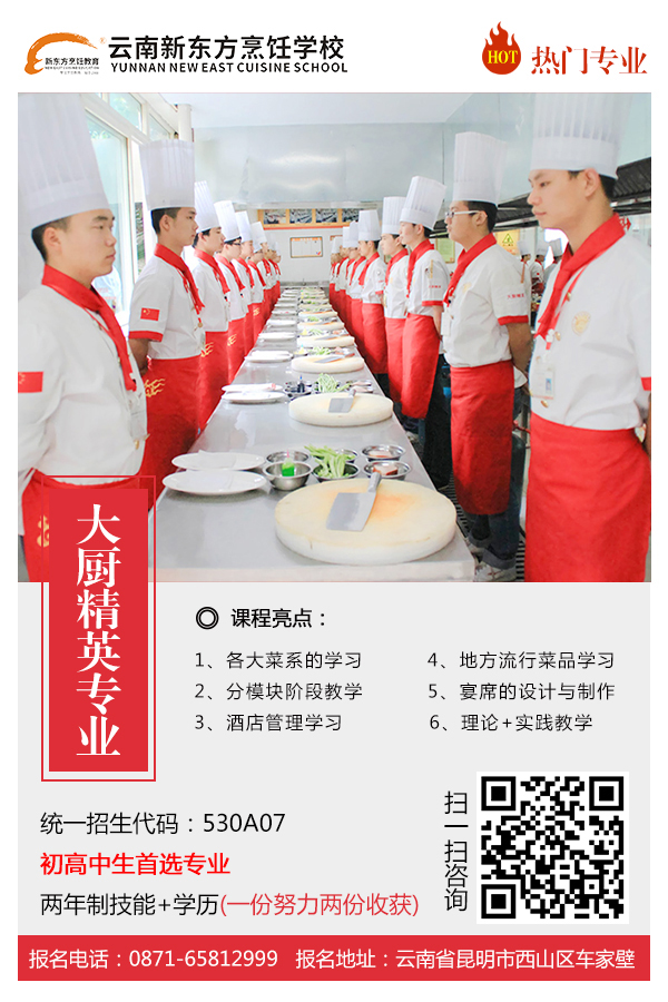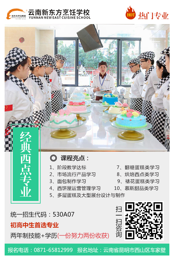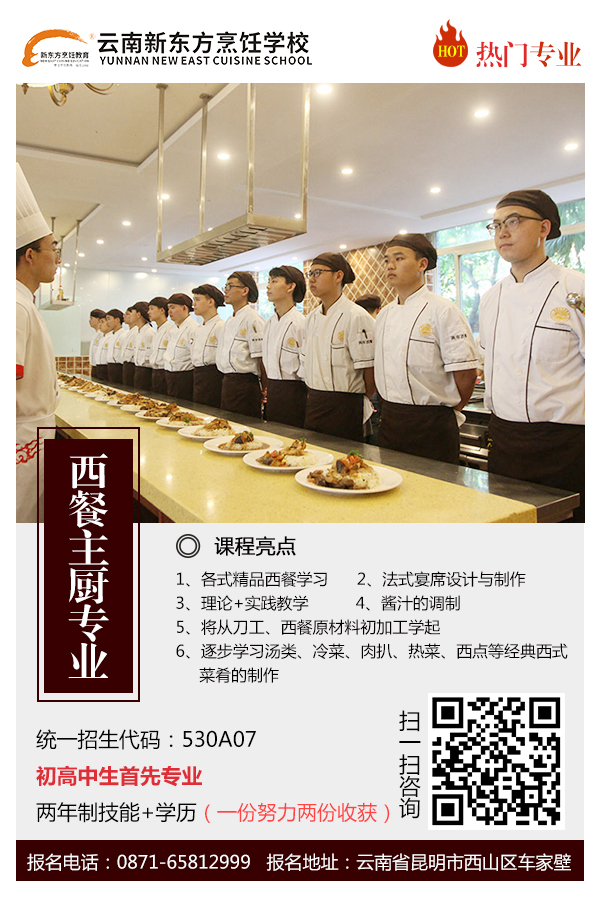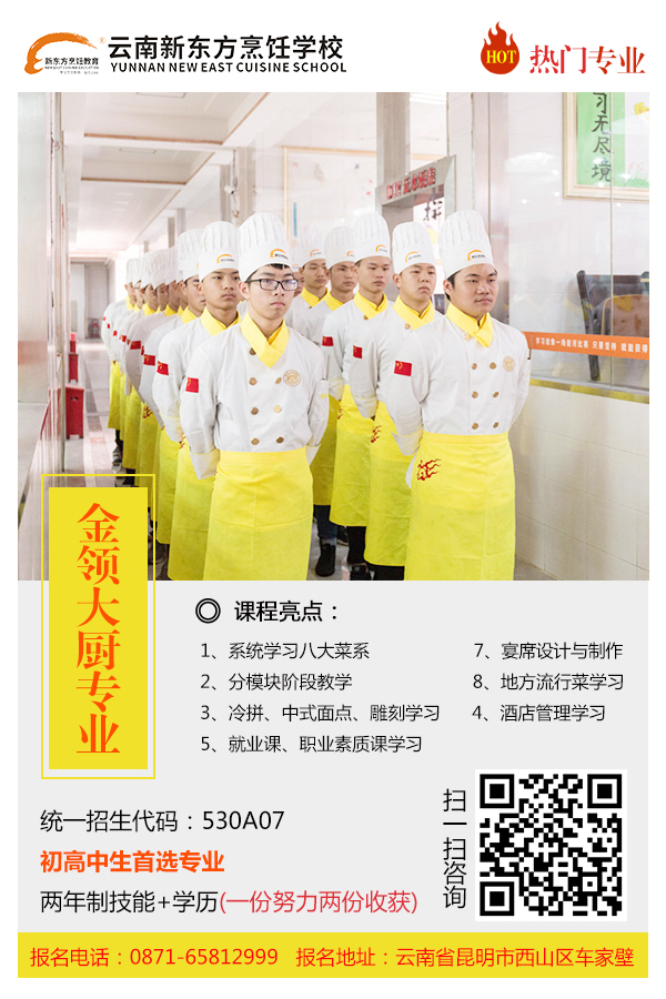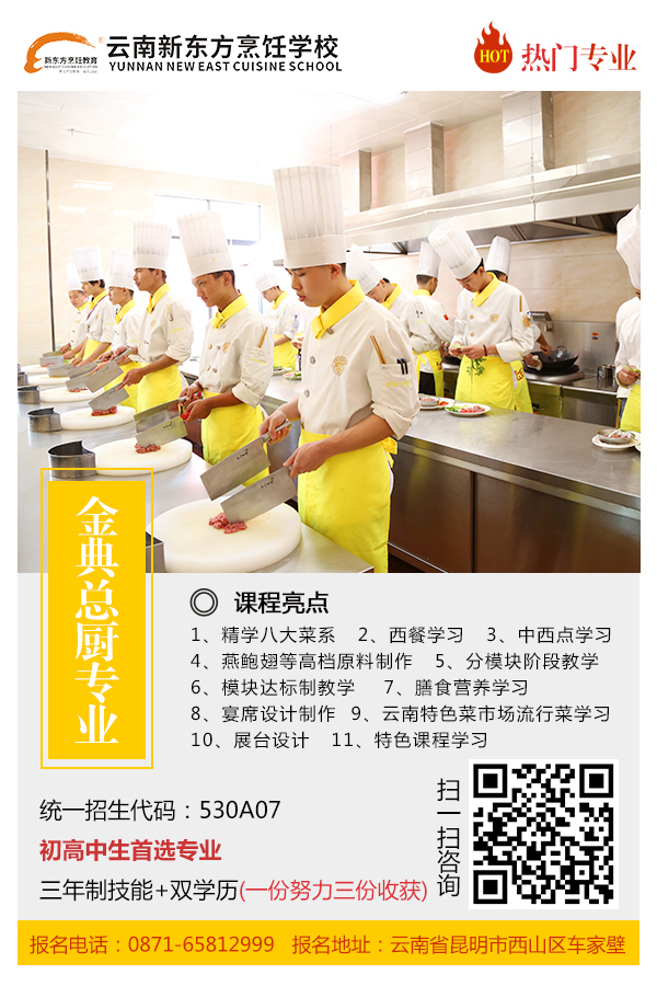 云南新东方烹饪学校2020年夏秋季热门专业如下: