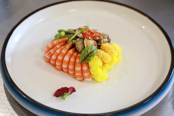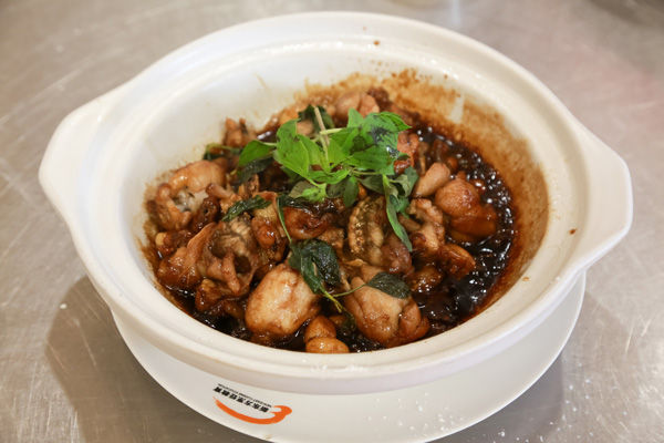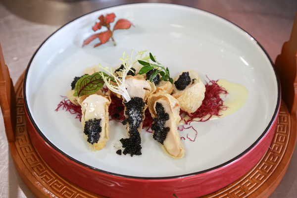 已有多年从厨经验的王大师,厨艺精湛,对菜品的烹制有着自己独到的见解,本次授课王大师为学子们带来了兼具经典与创新的菜品,分别为捞汁四宝、三杯牛蛙、脆皮松茸。