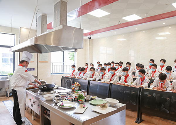 学生对示范菜肴进行流动观赏、拍照,分组品尝菜肴。根据当日示范菜肴提问答疑,布置当日实训要求