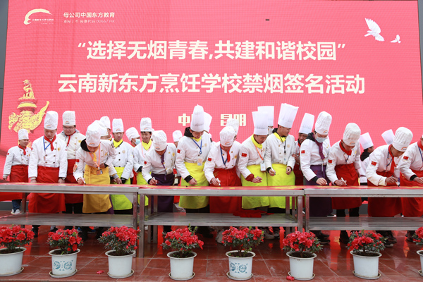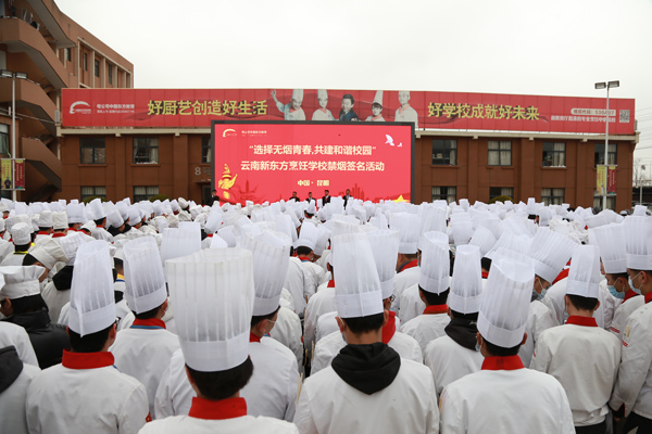 为宣传吸烟有害健康的常识,更好地劝诫大家戒烟,呼吁大家养成健康的生活习惯,树立和展现学校师生良好的精神面貌。近日,云南新东方烹饪学校举行校园禁烟活动签字启动仪式,学校相关领导、广大师生共同参与。
