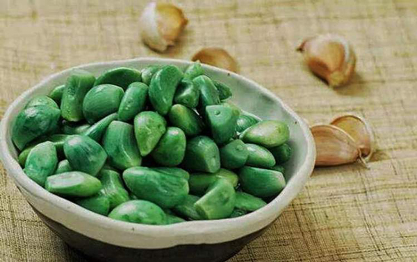 腊八蒜就是在阴历腊月初八的这天来泡制蒜。将剥了皮的蒜瓣儿倒入醋,放入密封的罐子,蒜会变成碧绿色,味道也很爽口。