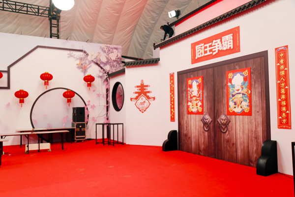 一眼望不到尽头的1600㎡超级演播厅,通体使用环保气膜搭建,经过宽敞明亮的旋转玻璃门,踏入演播厅内部顿时眼前一亮。别致的马头墙、小片的黛瓦、雕梁花窗、飞檐出甍、回廊挂落,雕刻精美、流檐翘角、宏伟壮观。节目组和新东方烹饪教育的团队在布景上着实下了一番功夫。