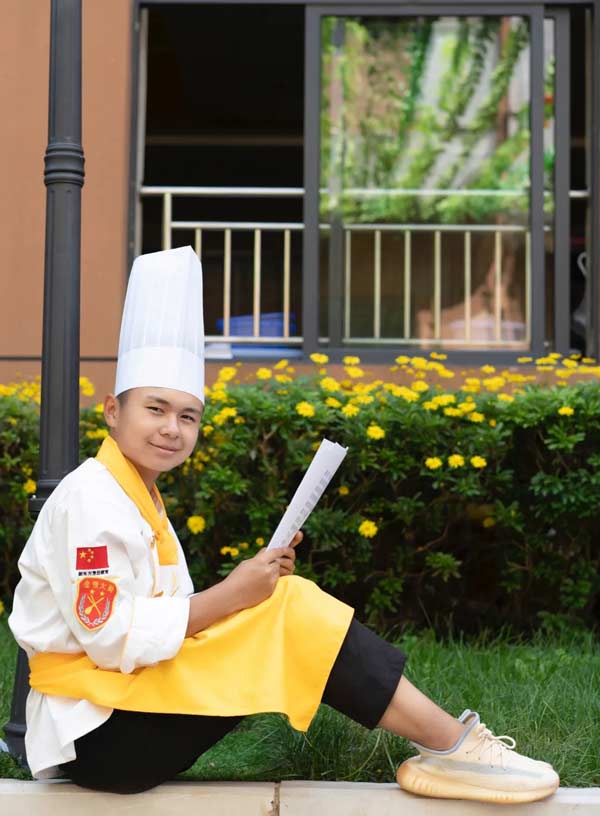 15岁的杨海鹏从小就热爱美食,喜欢在电视上看一些美食节目,最喜欢的美食节目是舌尖上的中国。在一次偶然的机会杨海鹏通过短视频了解到了云南新东方烹饪学校,并产生了浓厚的兴趣。