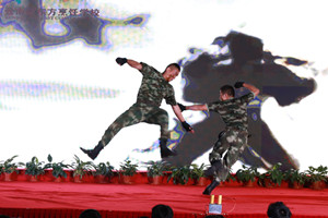 省公安边防武警厨师培训班的官兵表演擒拿武术