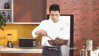 (5)翻炒:炒锅加入橄榄油加热,将打散的鸡蛋倒进去炒熟后盛出备用。特写鸡蛋在橄榄油中膨胀的画面。
