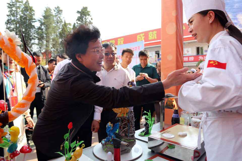 云南省总工会常务副主席王惠萍女士在4月15日昆明地区职工“七十二行大练兵、三百六十行出状元” 餐饮服务类大赛上忍不住伸手翻看云南新东方烹饪学校糖艺老师的胸牌,激动的说道:“这位老师,我想看看你叫什么名字,你年纪这么轻,就能做出这么精美绝伦的糖艺作品,实在是难能可贵,云南新东方的老师果真是名不虚传…”。
