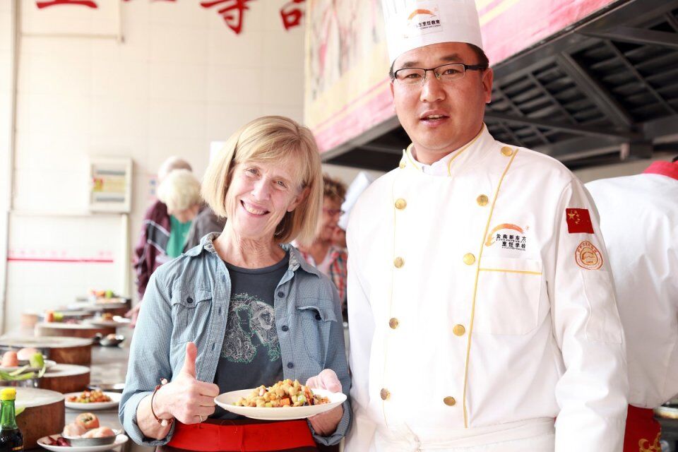 虽然语言的障碍使得在交流方面有点不便,但也抵挡不了东方美食对外国朋友的吸引。在参观了校园后,外国友人进教室学习操作,为了能让外国友人亲手烹制中国菜肴,云南新东方烹饪学校特别安排由老师先操作,一道道精美的菜肴在大师们手中不费吹灰之力就能烹制出来,获得了外国朋友们的声声赞叹,纷纷竖着拇指说“very good”。之后在老师的指导下让外国友人亲手体验。