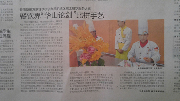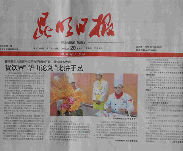 近日,由昆明市人才领导小组办公室、昆明市总工会、昆明市人力资源和社会保障局联合举办的昆明地区职工“七十二行大练兵、三百六十行出状元”餐饮服务类大赛在云南新东方烹饪学校取得圆满成功,引来各大媒体竞相报道,云南电视台、昆明教育电视台《昆明教育新闻》、昆明日报、云南网络广播电视台,于20日至23日滚动播出职教宣传专题报道,敬请关注。同时还可以登陆“昆明教育电视台”官方网站(网址:http://www.kmetv.com/index.shtml)收看进行点播。