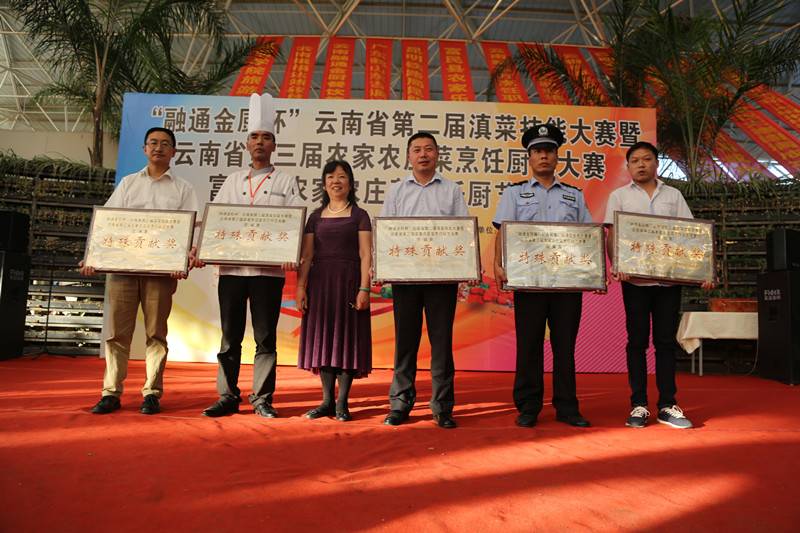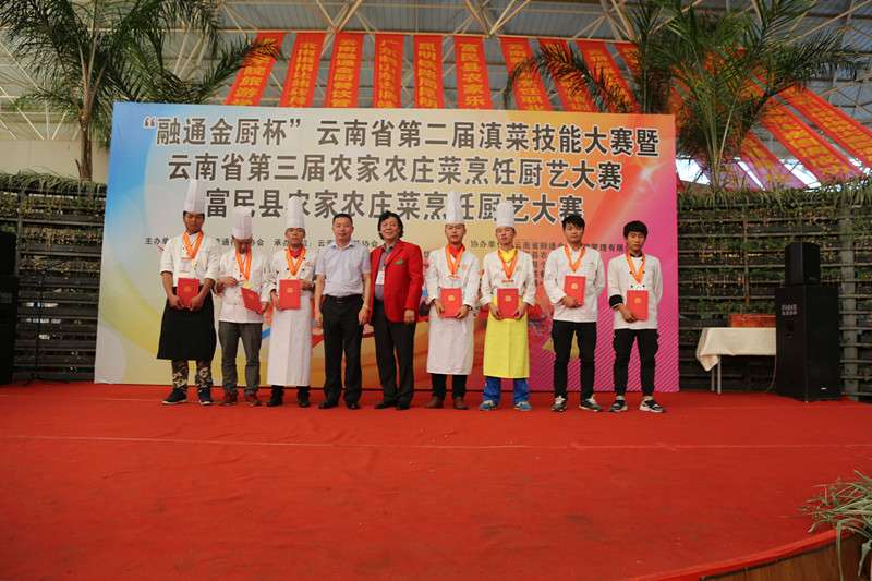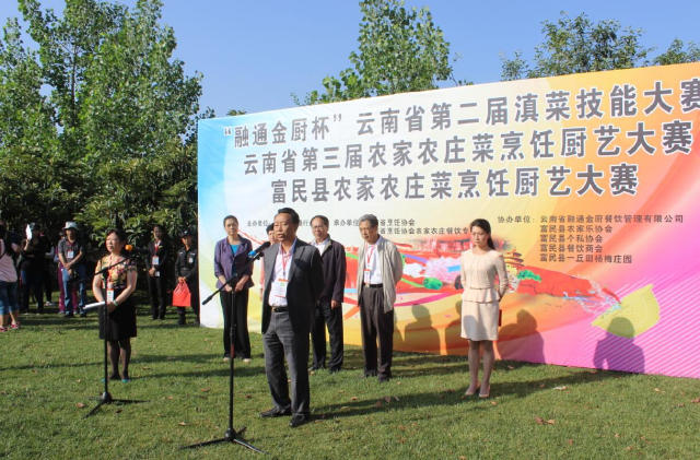 由云南省流通行业行会主办,云南省烹饪协会、云南省烹饪协会农家农庄餐饮专委会承办的融通金厨杯”云南省第二届滇菜技能大赛暨云南省第三届农家农庄菜烹饪厨艺大赛于2016年5月10日在昆明市富民县一丘田杨梅园举行,富民县委书记李康率县委领导班子莅临大赛现场并发表讲话;同时,大赛得到了云南省财贸工会的大力支持。