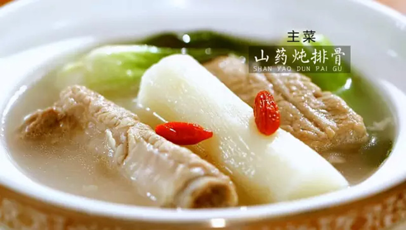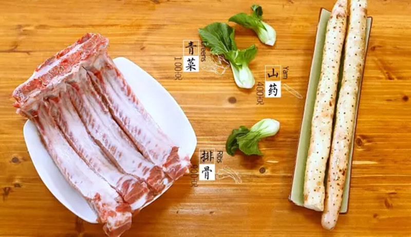 准备:排骨切块,葱姜切段备用,将山药去皮切成小段备用