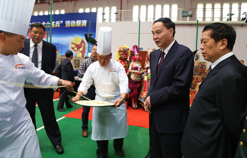 原昆明市市长李文荣(右二)观看我校大师厨艺表演